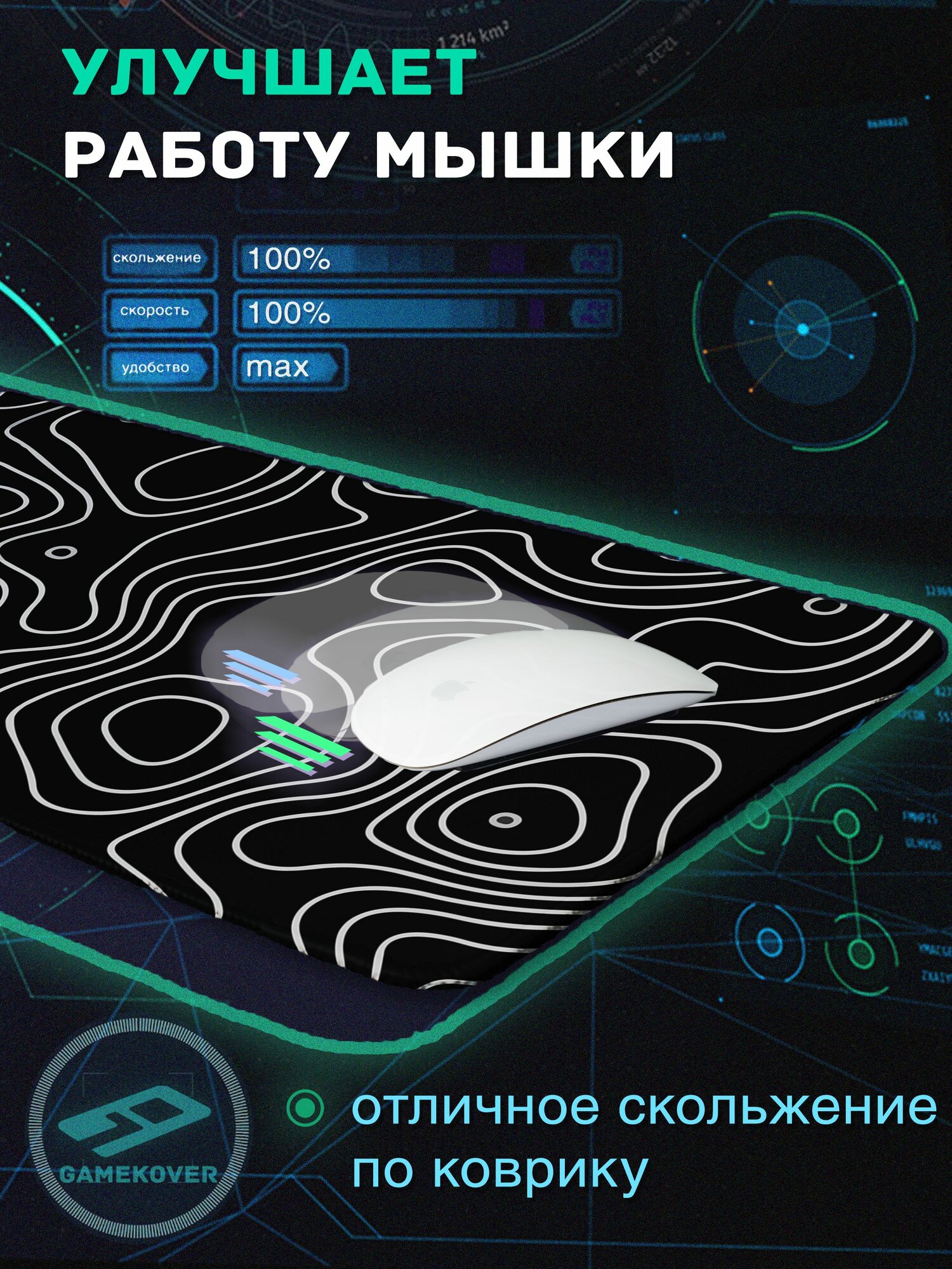 Коврик для мышки большой игровой 90смх38смх4мм сегменты