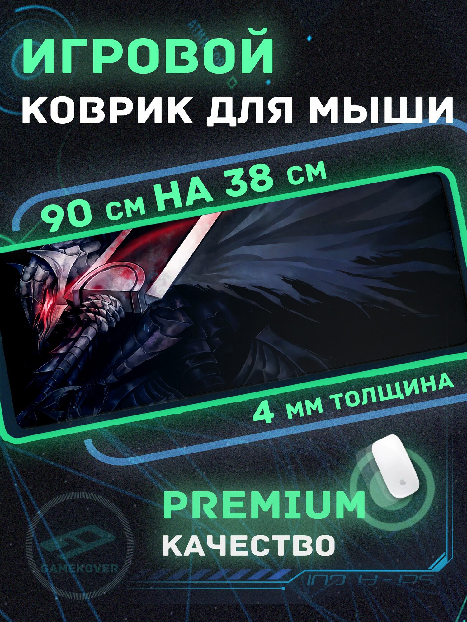 Купить Игровой коврик для мышки большой на компьютерный стол 90х40 аниме Берсерк
