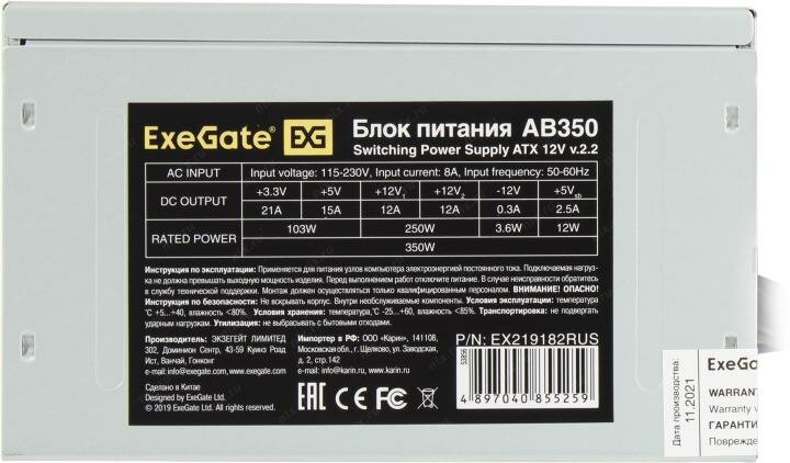 Ниже Вы можете прочитать отзывы на Блок питания ExeGate AB350 EX219182RUS, 350 Вт, ознакомится с подробными характеристиками, посмотреть интересные обзоры и фотографии на Блок питания ExeGate AB350 EX219182RUS, 350 Вт.