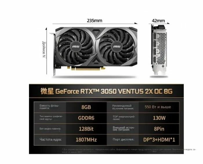 Видеокарта MSI GeForce RTX 3050 8192Mb, Ventus 2X XS 8G OC (RTX 3050 Ventus 2X XS 8G OC) 1xDVI-D, 1xHDMI, 1xDP, Ret интересное: