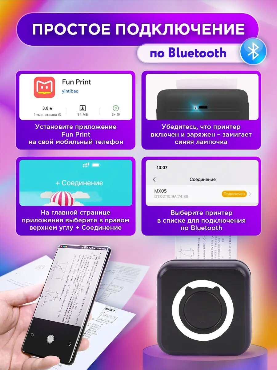 Мини принтер беспроводной портативный для телефона интересное: