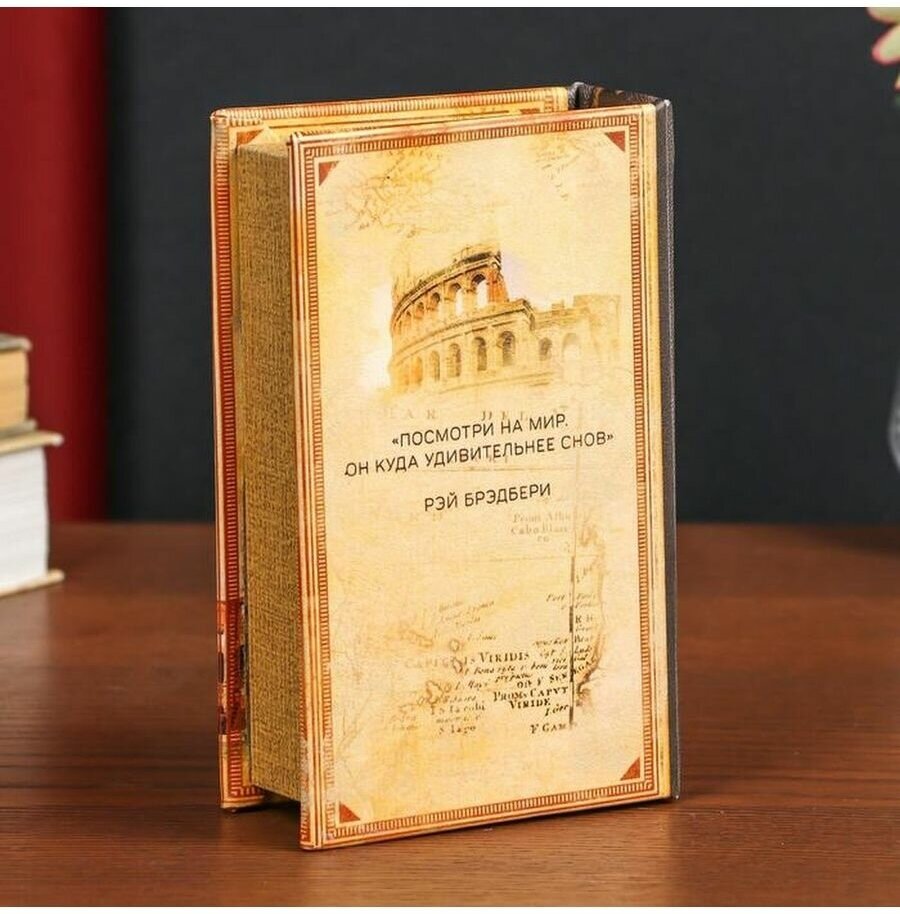 Сейф-книга дерево кожзам Открой мир путешествий 17х11х5 см интересное: