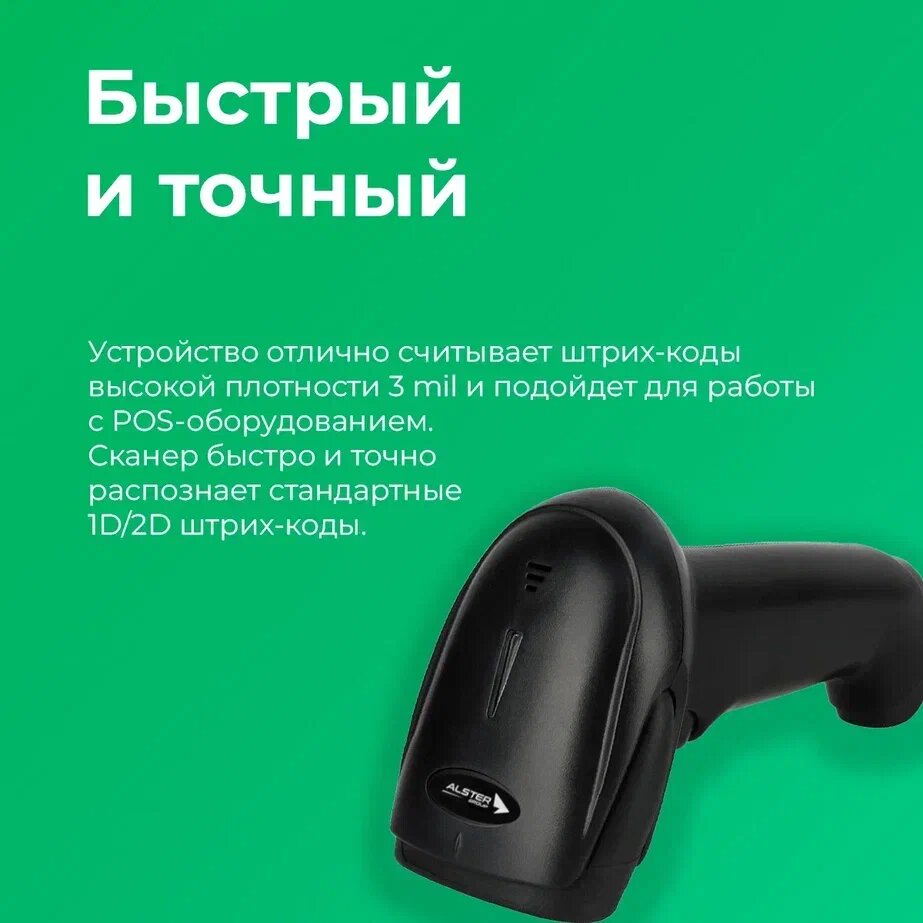 Сканер штрихкода Apex ALS-2002D, 2D, USB, черный интересное: