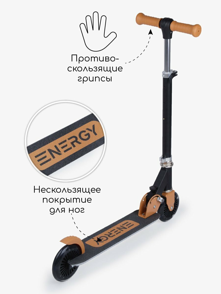 Самокат детский двухколёсный Amarobaby, Energy, чёрный/коричневый