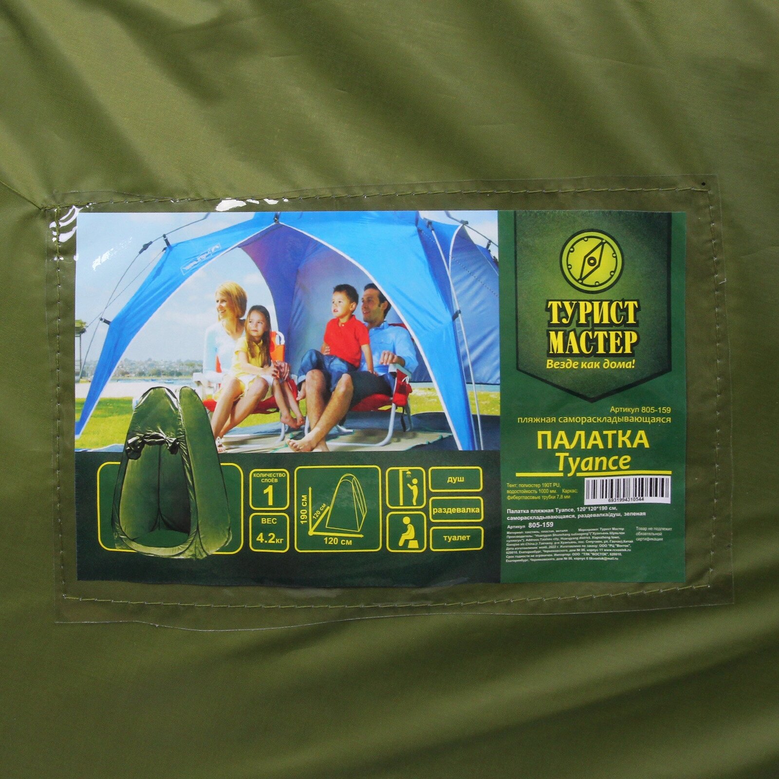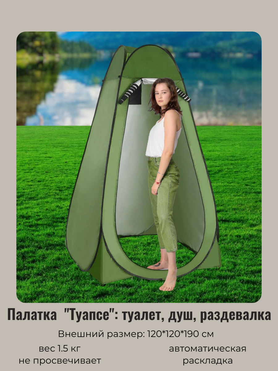 Палатка туристическая, пляжная, туалет, душ, раздевалка Туапсе, 120*120*190 см, самораскладывающаяся, зеленая