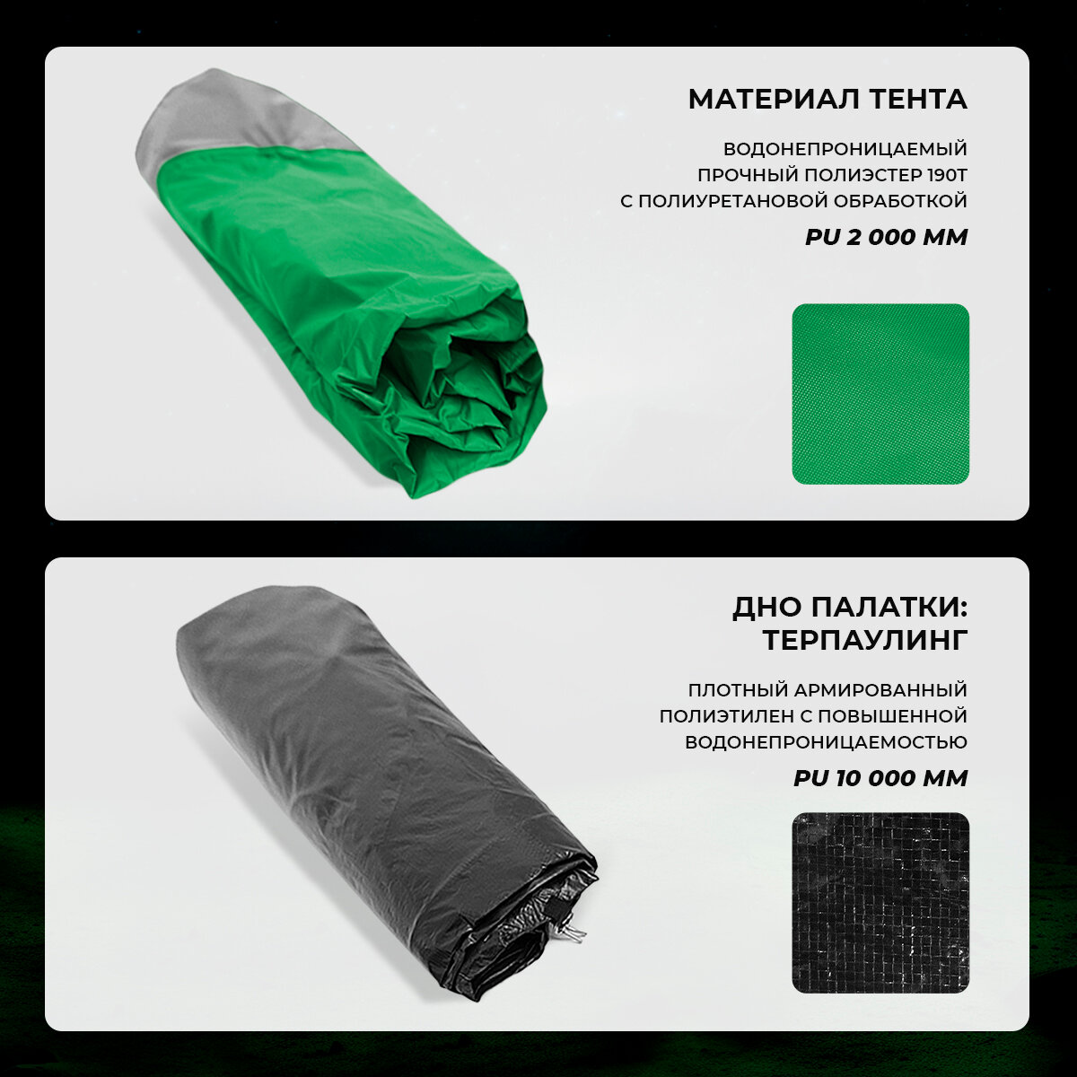 | Материал тента | Полиэстер с ПУ пропиткой |