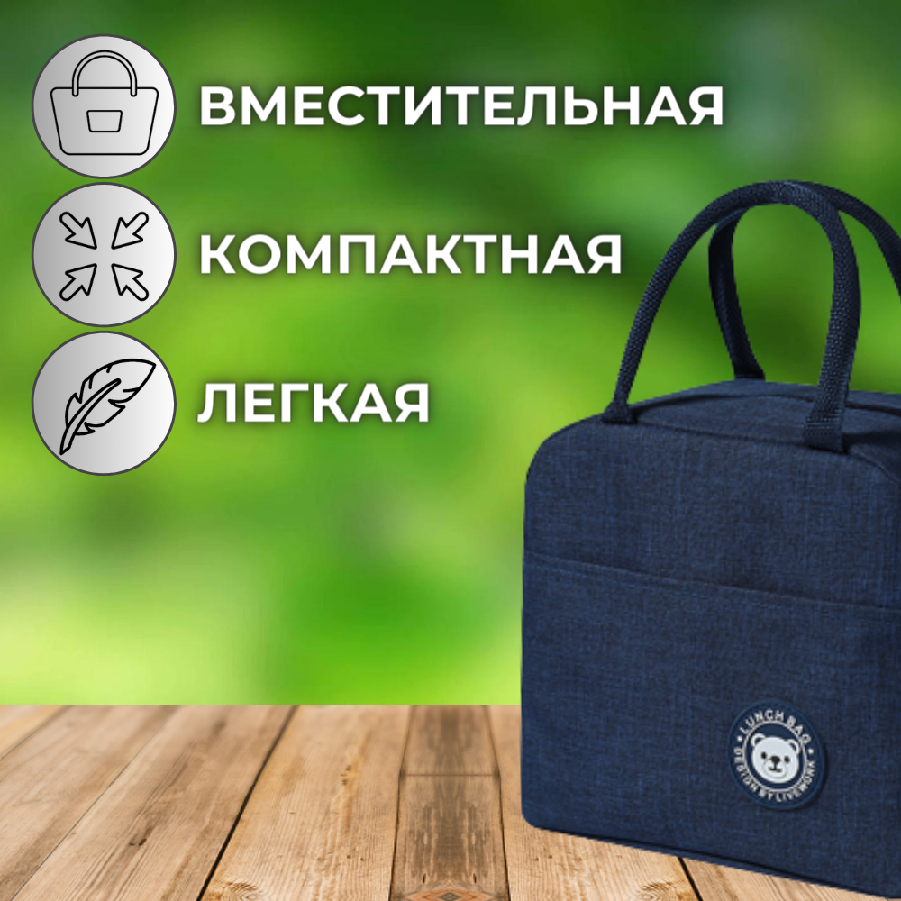 СохранитьТермосумка для ланч-бокса, объём 6 литров, сумка для обеда и путешествий 23х21х13см, синяя интересное:
