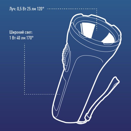 Фонарь ручной 0.5Вт LED+4SMD(1Вт) 1xAA (R6) корпус ABS-пластик ремешок ручной космос KOC123B интересное: