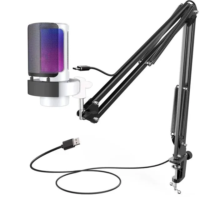 Микрофон для компьютера игровой с поп-фильтром, конденсаторный, на стойке, с RGB подсветкой, микрофон игровой, для стриминга, USB микрофон