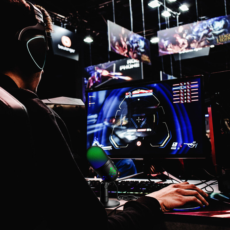 Многофункциональный микрофон игровой для стриминга из прочного алюминия с ргб подсветкой и поп фильтром для компьютера интересное: