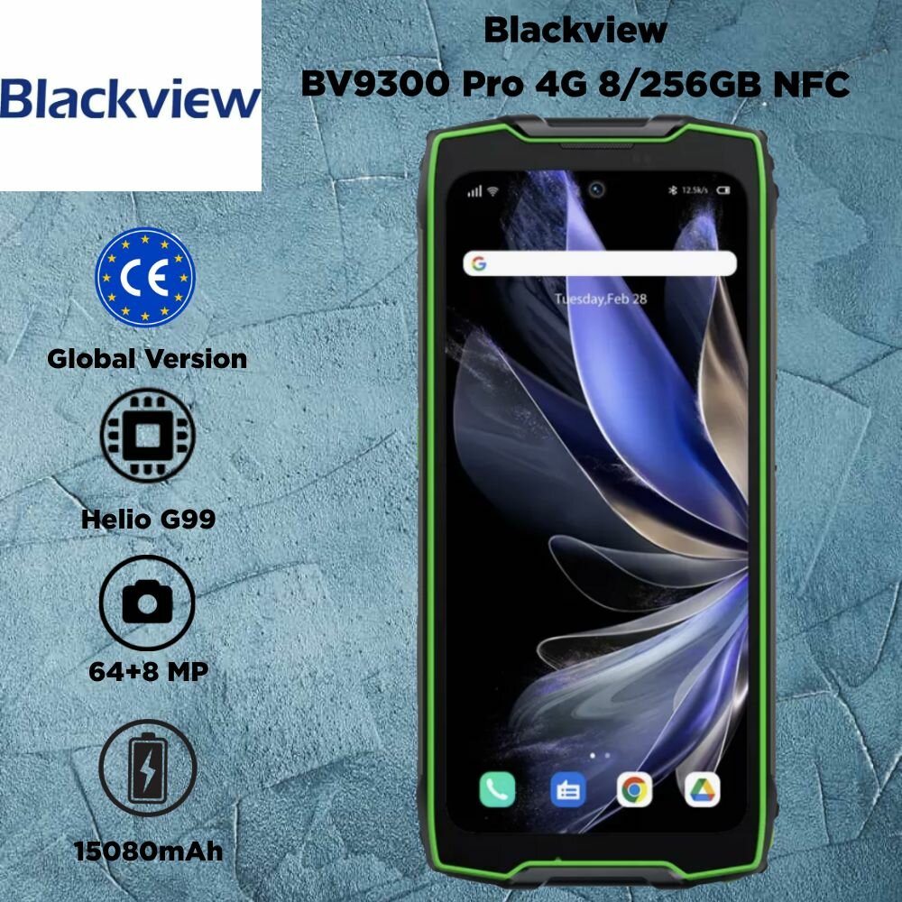 Смартфон Blackview bv9300 pro, 8/256ГБ, 12/256ГБ, global, Standard Version, Blackview, bv9300 pro, Смартфон, Зеленый, 12ГБ, 256ГБ, global, Новый, 01.10.2023
