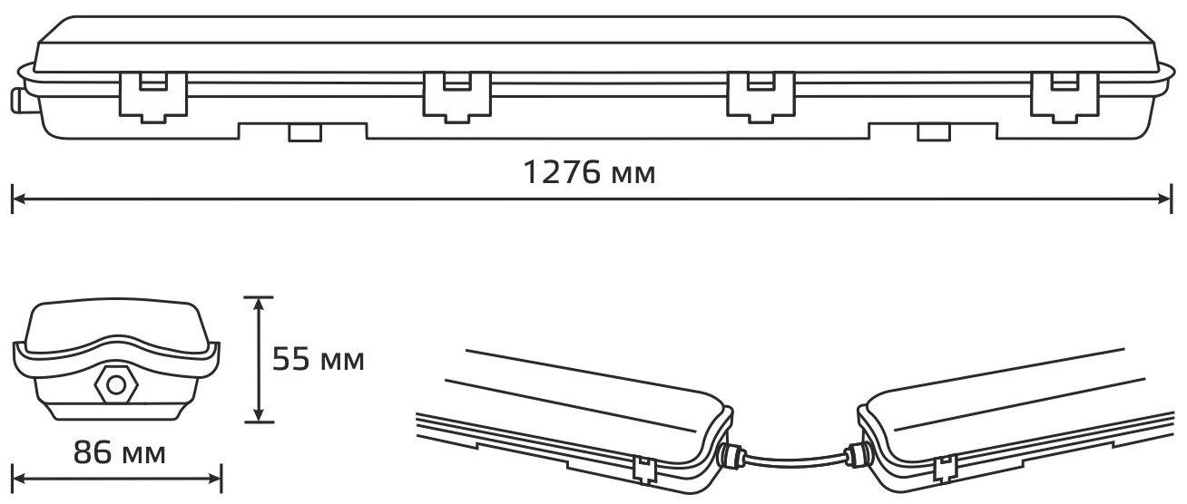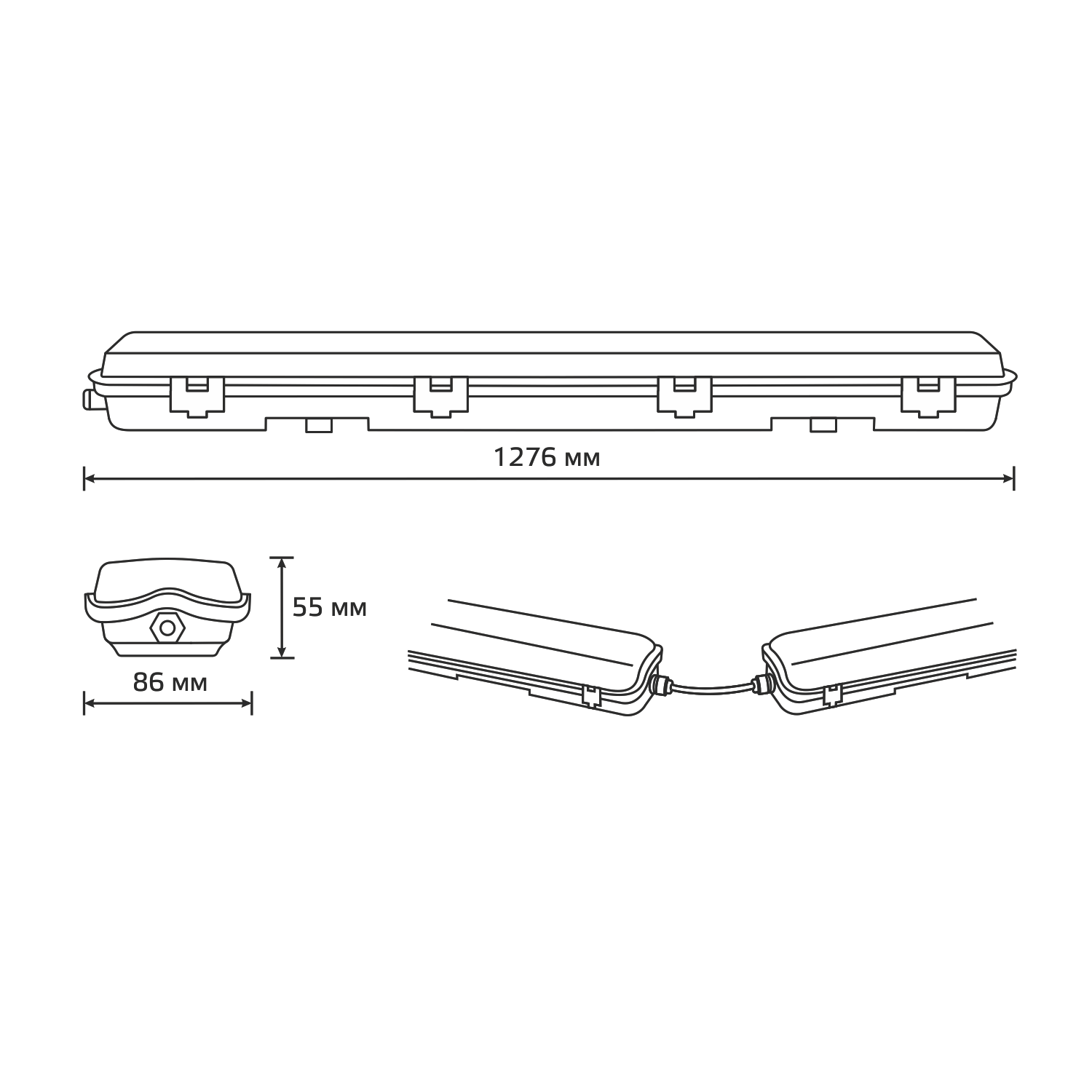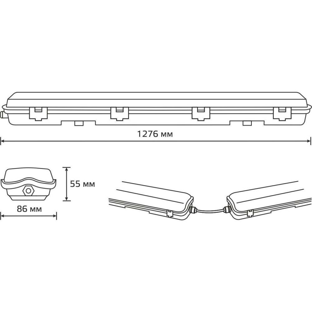 Светильник Lite G13 IP65 1276х86х55мм ДСП линейный для LED ламп 2х1200мм GAUSS 909437212