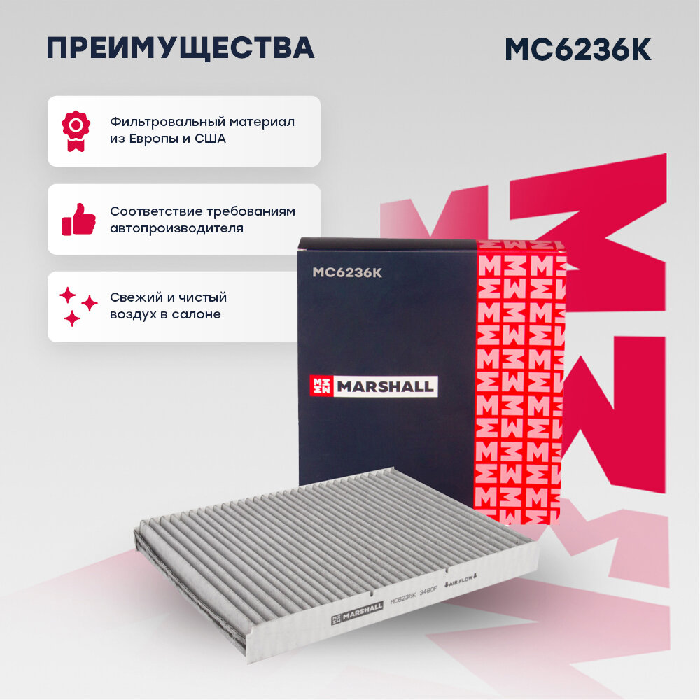 Фильтр салонный угольный MARSHALL MC6236K для Audi A3 96-, Skoda Octavia I 96-, VW Golf IV 97-, VW Polo III 94- // кросс-номер MANN CUK 2862