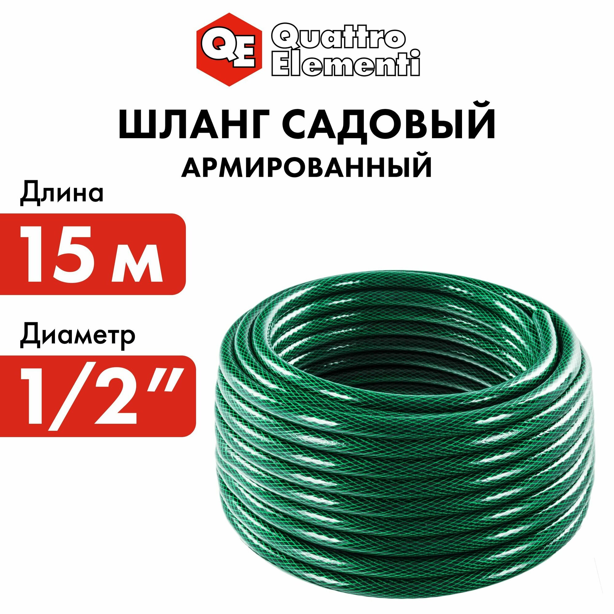QUATTRO ELEMENTI Шланг для воды садовый Smeraldo 1/2 15 метров, армированный, толщина стенки 1,9 мм, ПВХ 246-746 интересное: