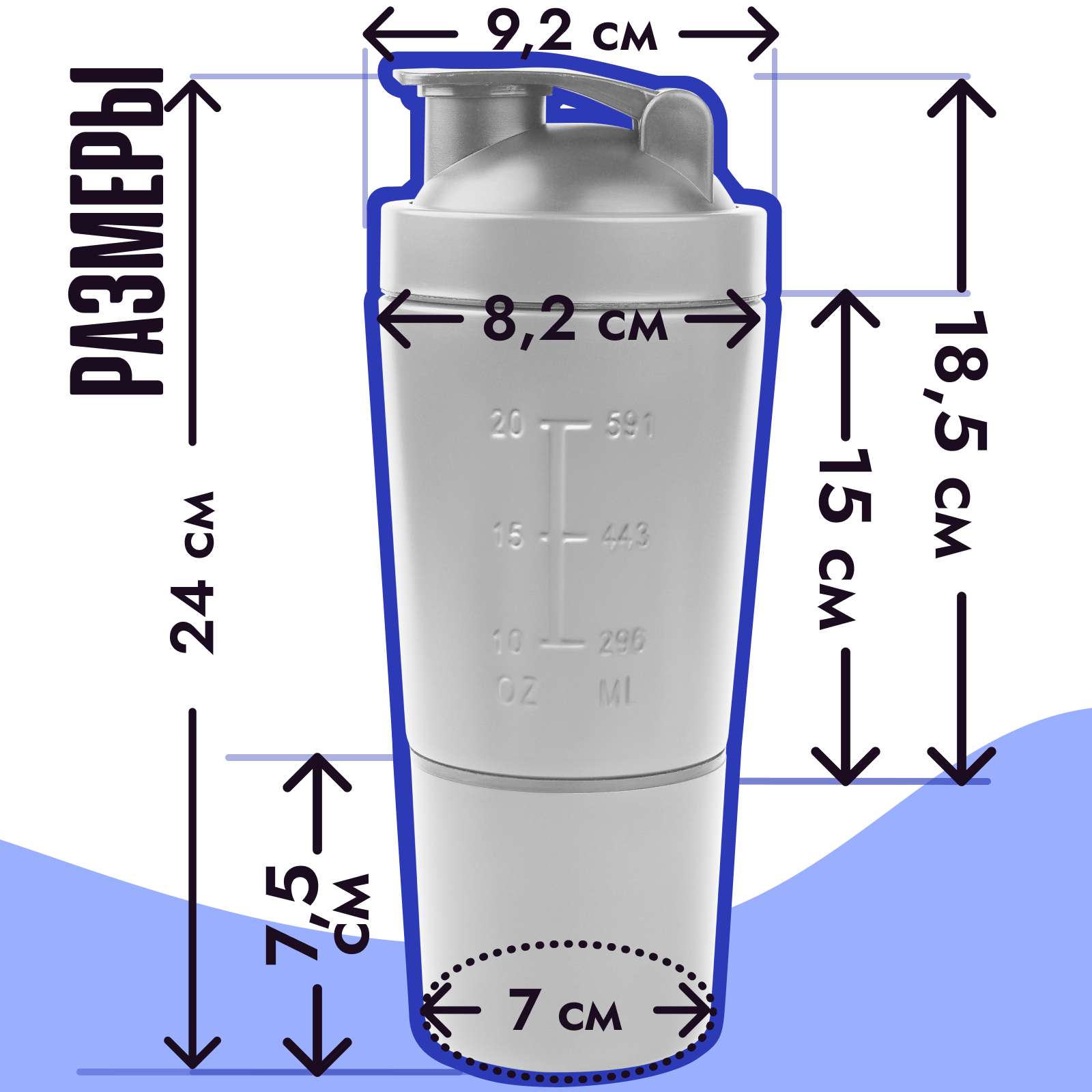 СохранитьШейкер спортивный металлический с контейнером для протеина спортивного питания VOTTLER интересное: