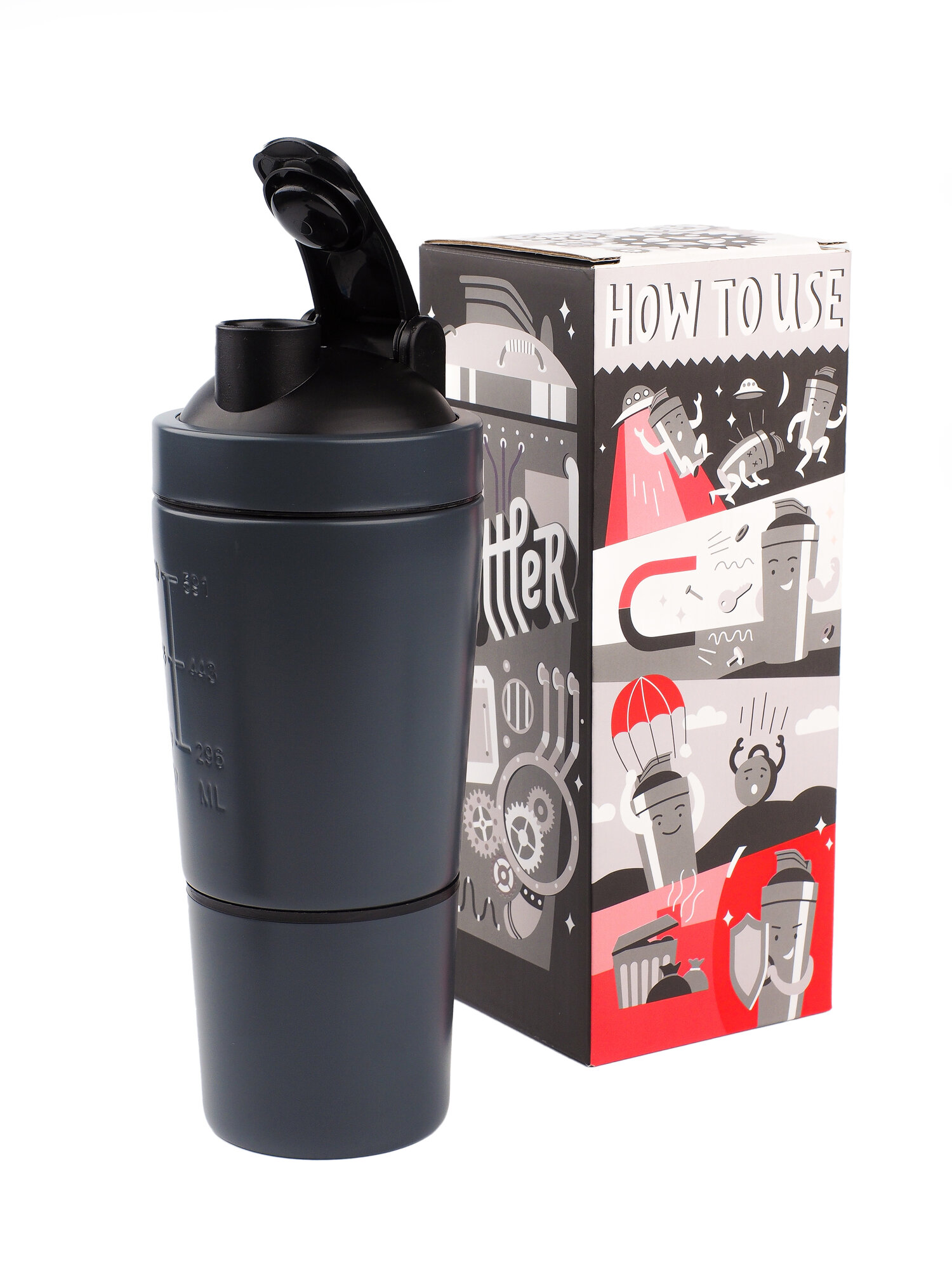 Купить Шейкер спортивный металлический с контейнером для протеина спортивного питания VOTTLER