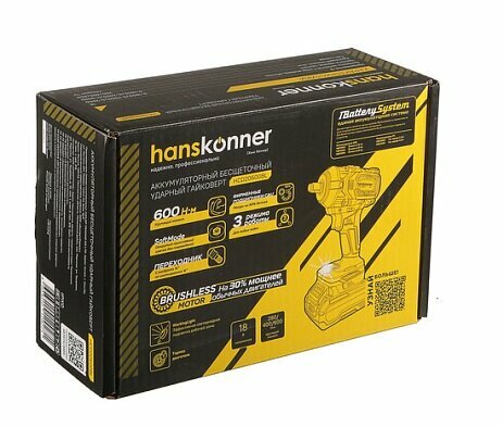 Аккумуляторный ударный гайковерт Hanskonner HCD20600BL, 18 В, 1BatterySystem