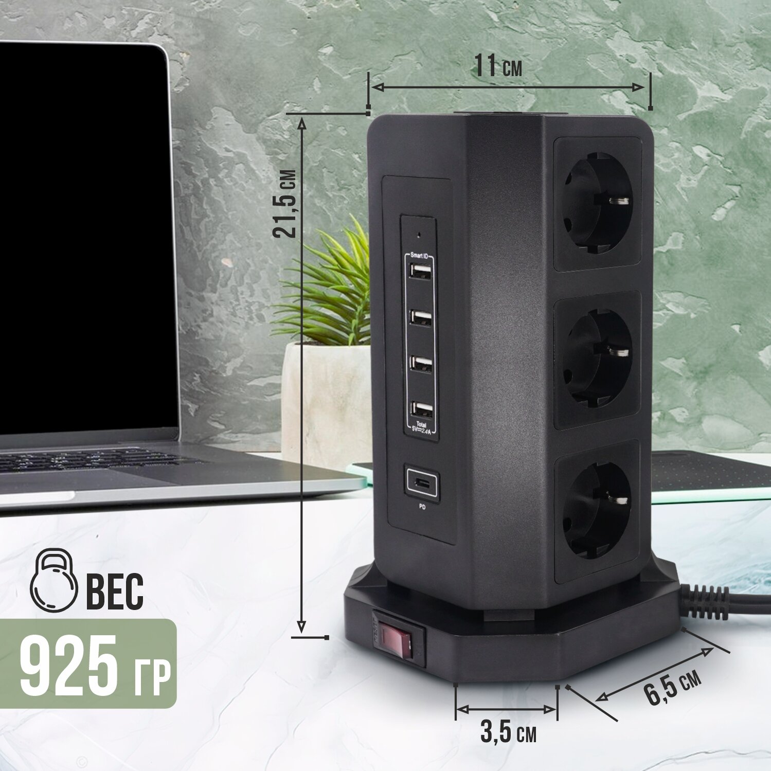 | Дополнительная информация | Мощный сетевой фильтр с smart USB разъемами |