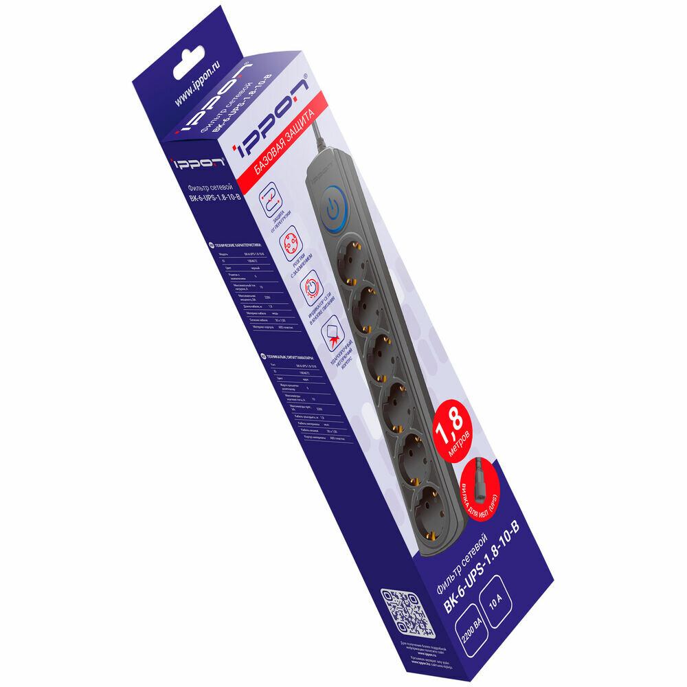 Сетевой фильтр Ippon BK-6-UPS-1.8-10-B 1.8м (6 розеток) черный интересное: