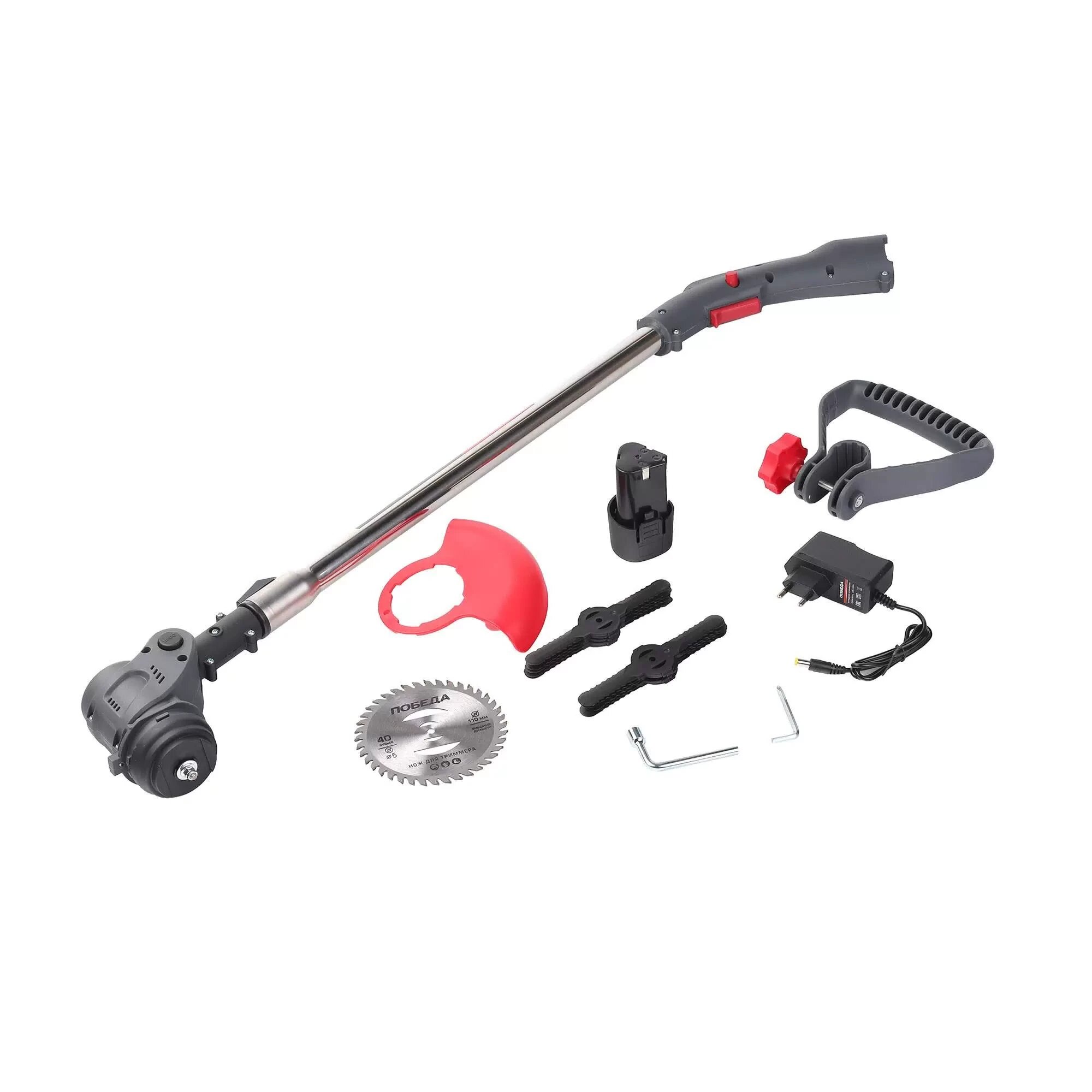 | Подробная комплектация | триммер, 1 АКБ и ЗУ, D-образная рукоятка, защитный кожух, пластиковые ножи 10шт, стальной нож 40Т, ключи для сборки и смены насадок, инструкция |