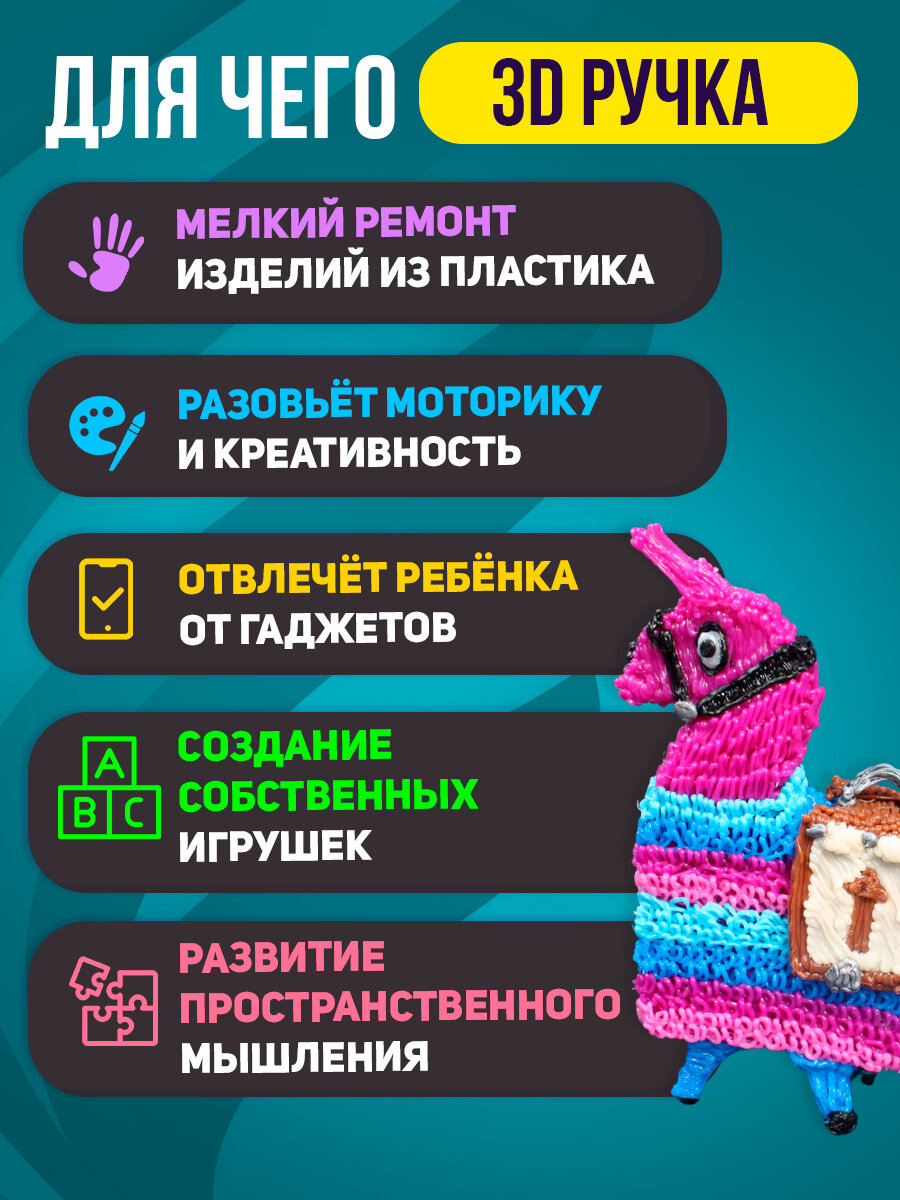 | Комплектация | 3Д ручка, пластик |