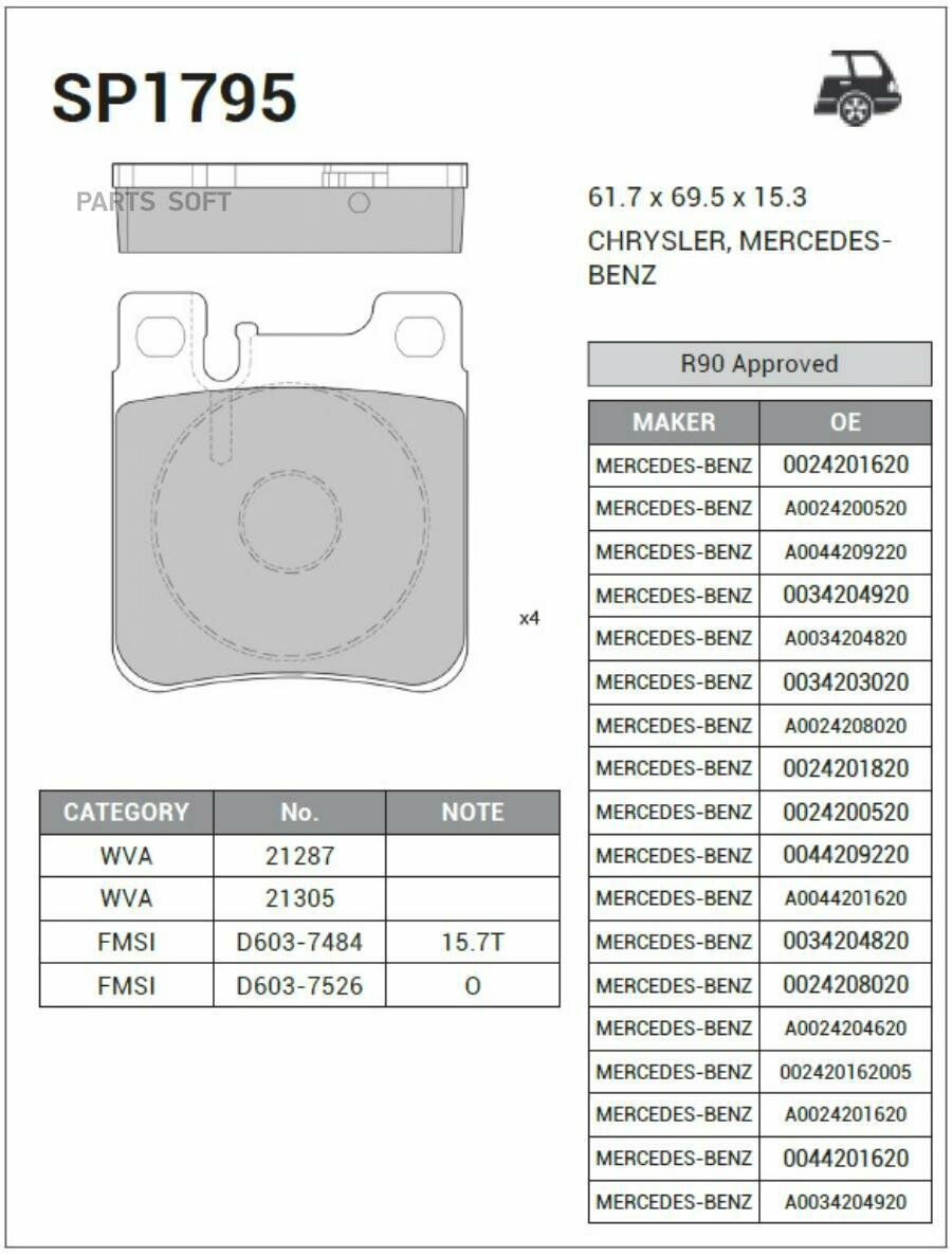 SANGSIN BRAKE SP1795 SP1795_колодки дисковые задние! \ MB W140 91>/W202 94>/W210 97>/W220 2.8/3.2 98>