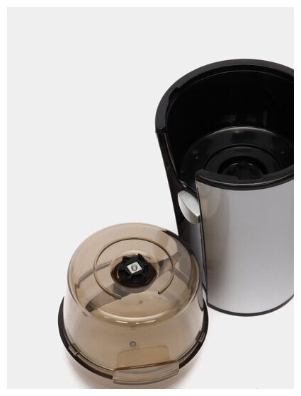 | Плюсы: | довольно большая вместимось (100 гр) и удобная съёмная чаша, внутренность кофемолки изолирована от возможности попадания кофейной пыли. |