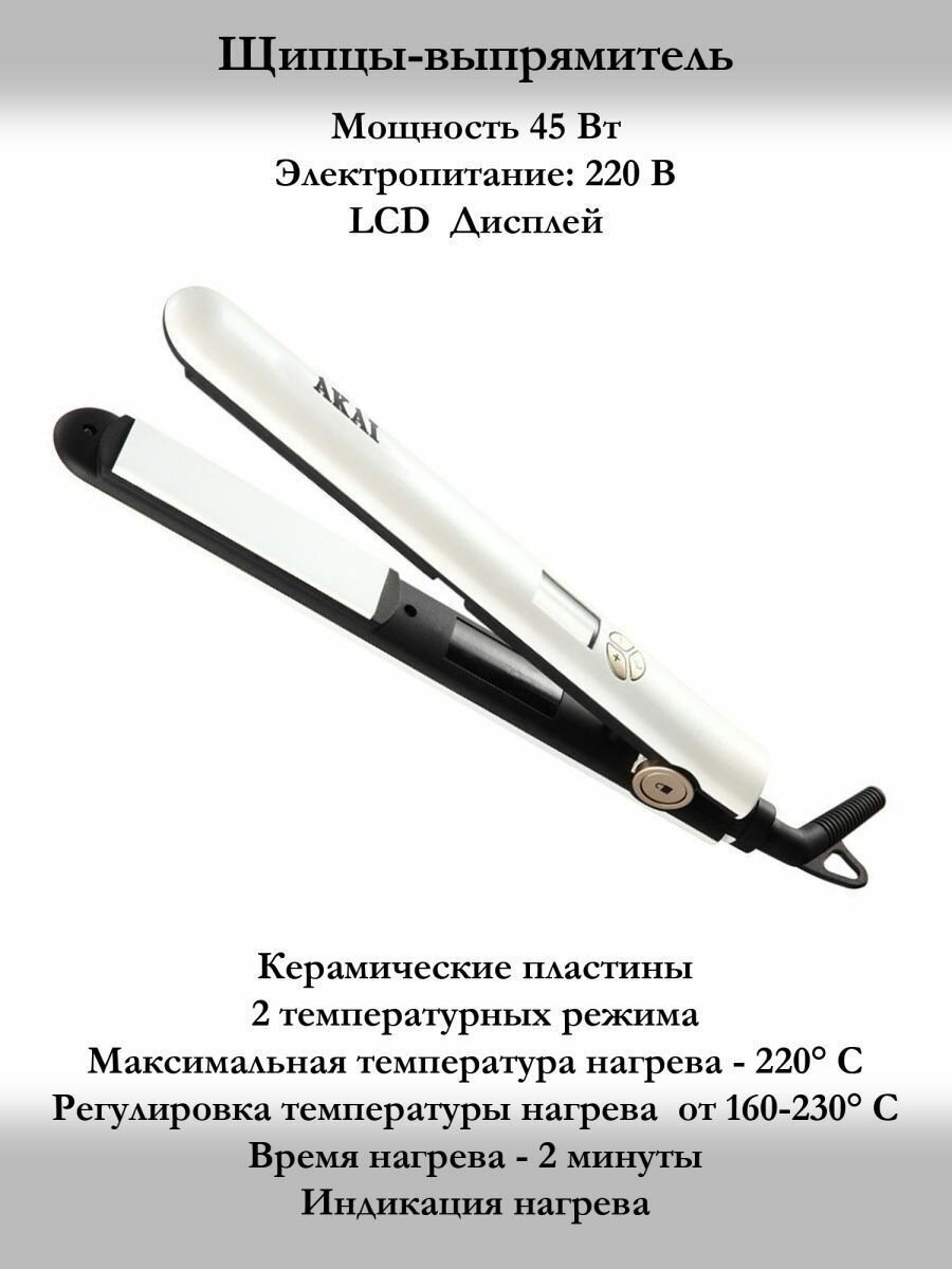 Выпрямитель для укладки волос AKAI HS-1801 W интересное: