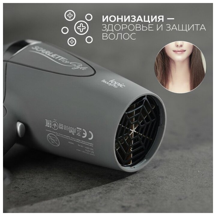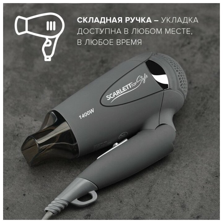 Фен SCARLETT SC-074 1400Вт ионизация складная ручка серый