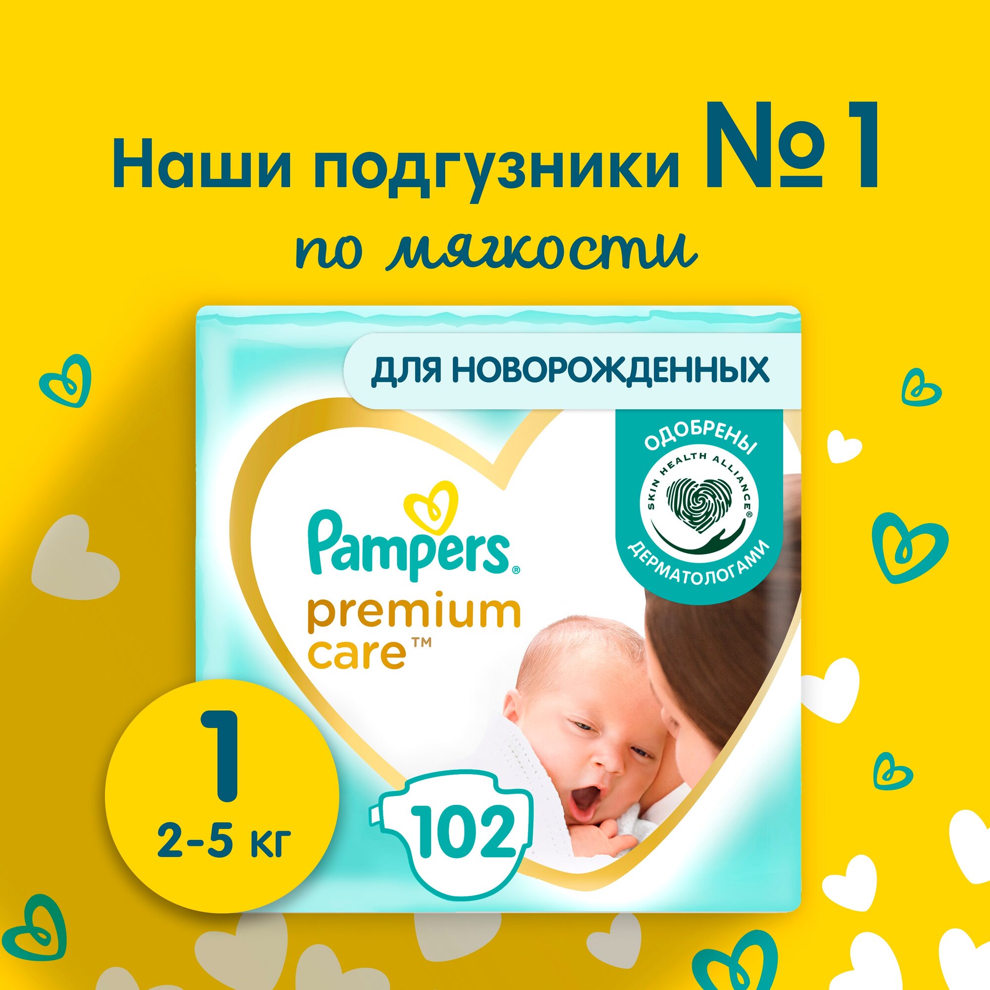 Подгузники Pampers Premium Care, размер 1, 102 шт, 2-5 кг