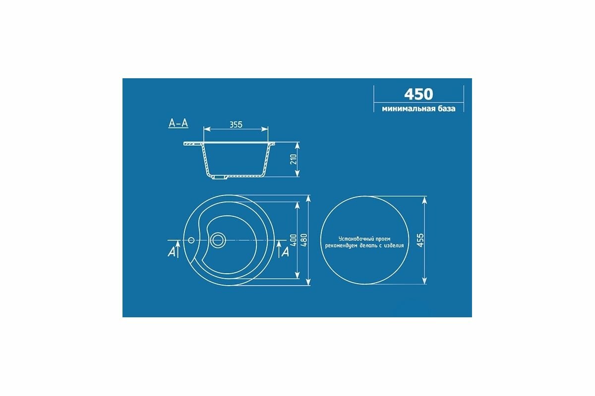 Мойка кухонная Ulgran из искусственного мрамора круглая U-102, цвет: черный, база: 45.5х45.5 см, арт. U-102-308