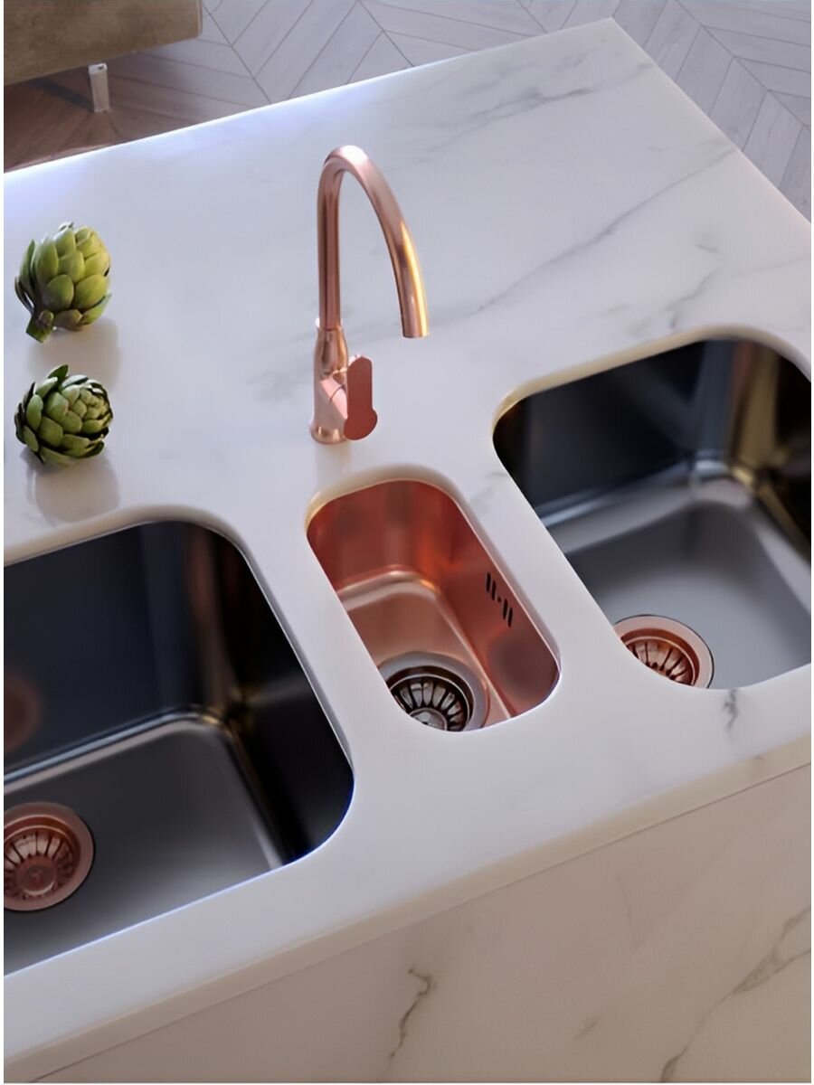 | Дополнительная информация | для монтажа под столешницу; нержавеющая сталь с PVD покрытием; цвет: медь, бронза, гранит |