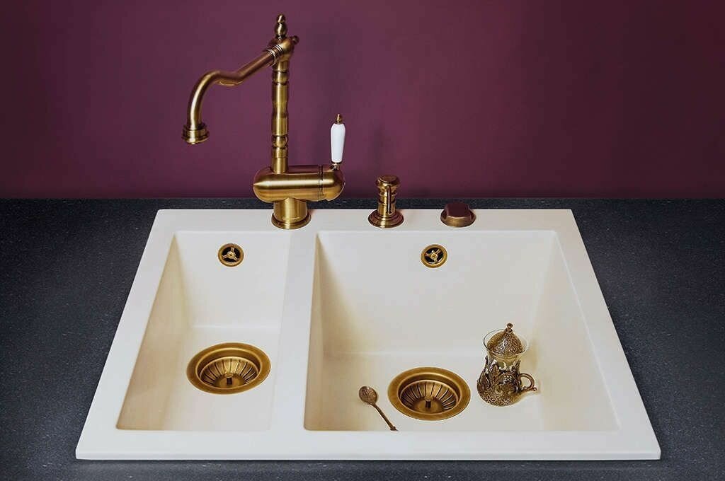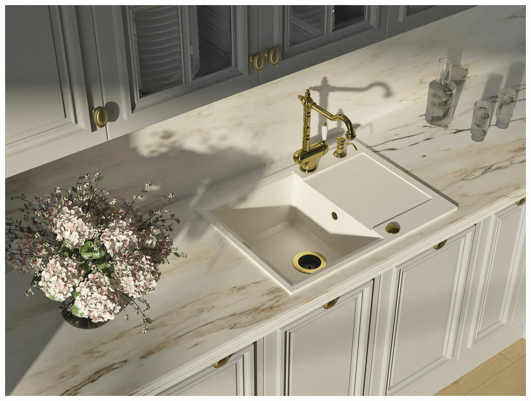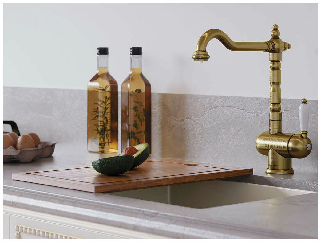 Смеситель для кухни (мойки) OMOIKIRI Kyoto-G OKY-G-35 золото/белый