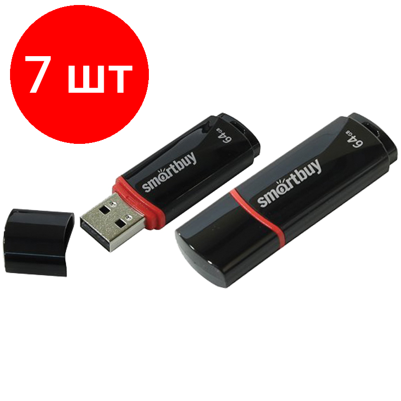 Купить Комплект 7 шт, Память Smart Buy "Crown" 64GB, USB 2.0 Flash Drive, черный