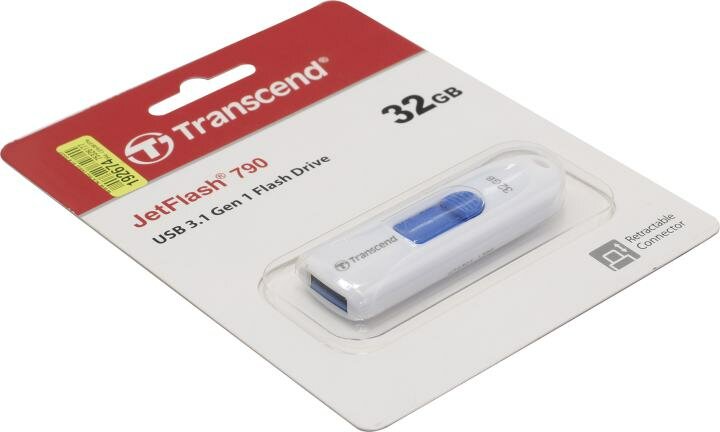 Флеш-карта Transcend JetFlash 790, 32 гб, USB 3,1 G1, бело-синяя (TS32GJF790W)