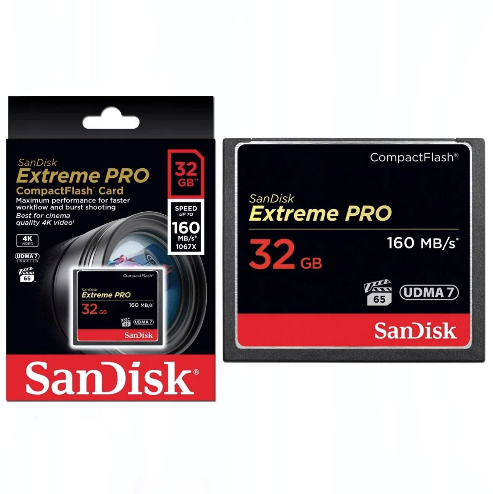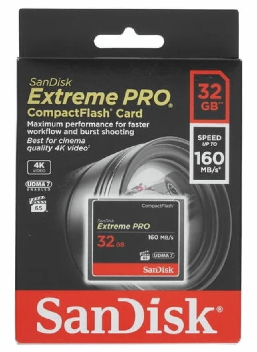 Карта памяти SanDisk Compact Flash 32 ГБ, R/W 160/150 МБ/с, 1 шт., черный