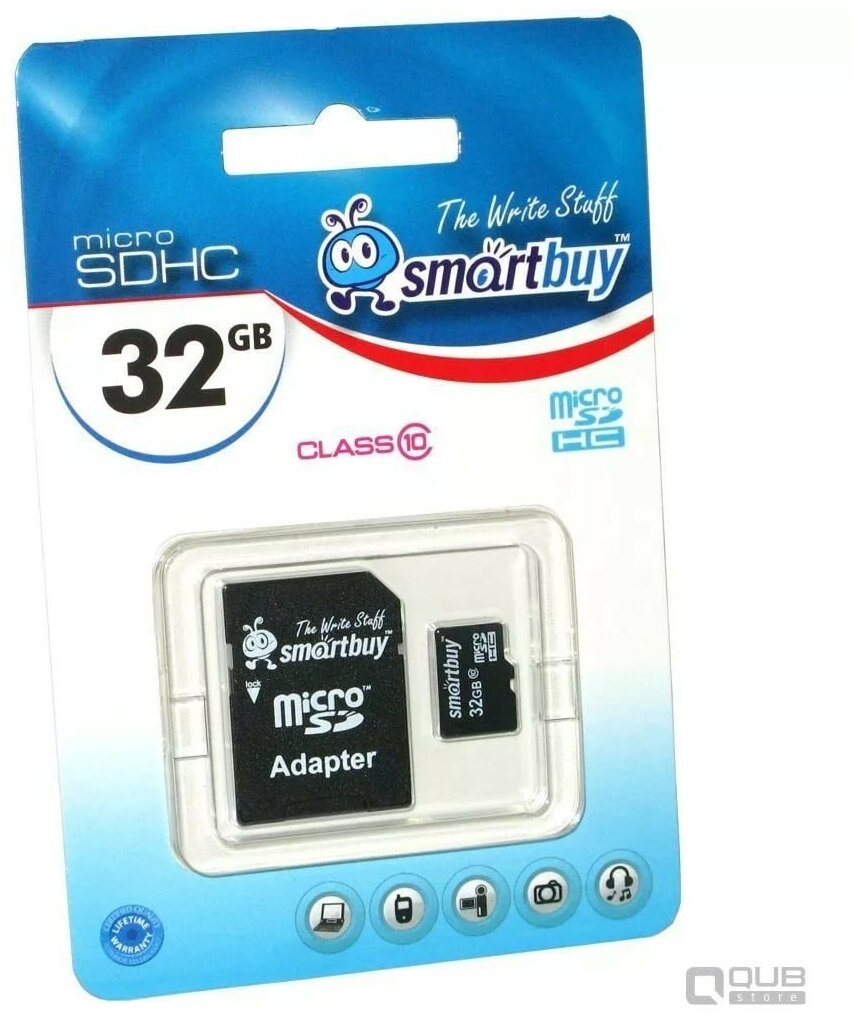 Карта памяти 32Gb - SmartBuy Micro Secure Digital HC Class 10 SB32GBSDCL10-01 с переходником под SD (Оригинальная!)
