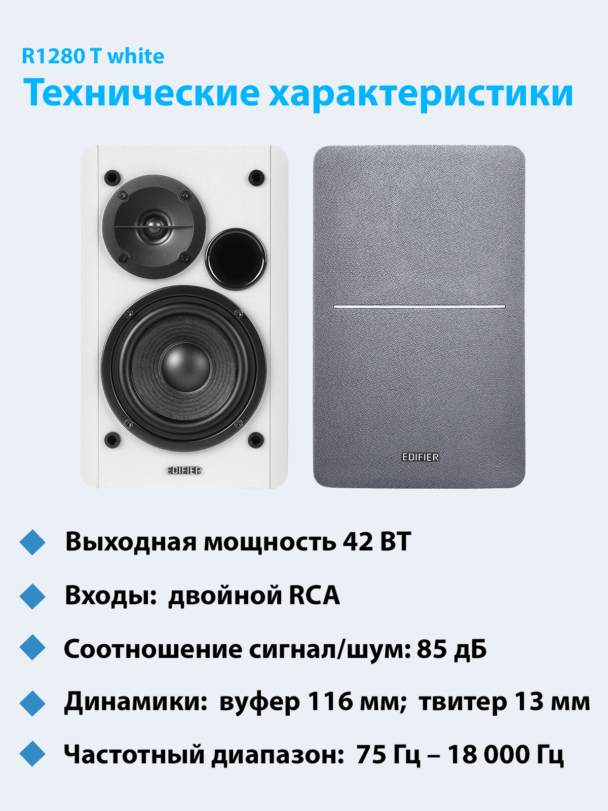 Edifier R1280T White, дерево, акустическая система 2.0, мощность(RMS): 21х2 Вт