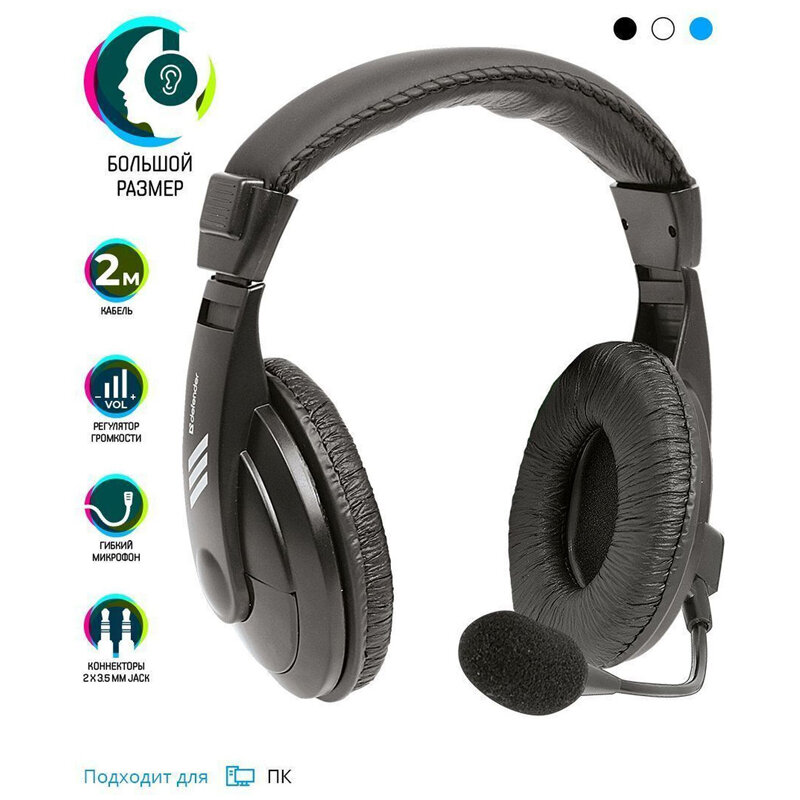 Наушники с микрофоном Defender "Gryphon" 750 (с регулятором громкости), 2м, черный