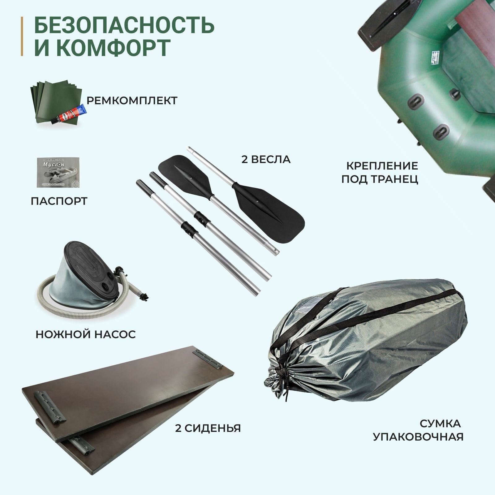 СохранитьЛодка надувная для рыбалки ПВХ двухместная крепления для транца под мотор Муссон H-270, зеленая интересное: