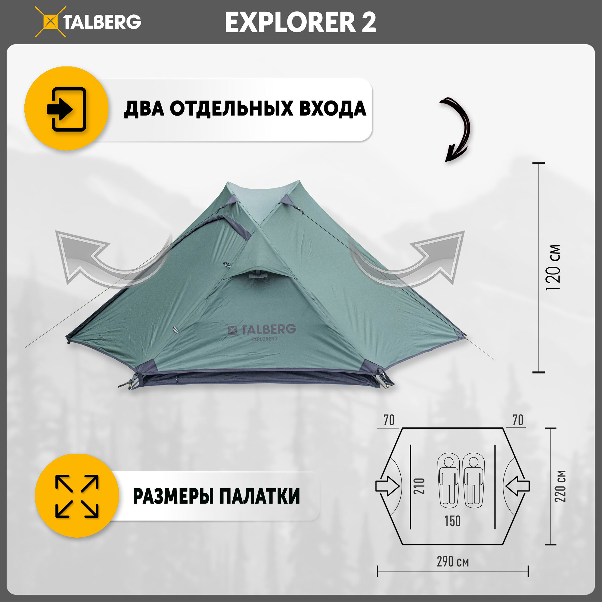 Палатка туристическая Talberg EXPLORER 2 , зелёный интересное: