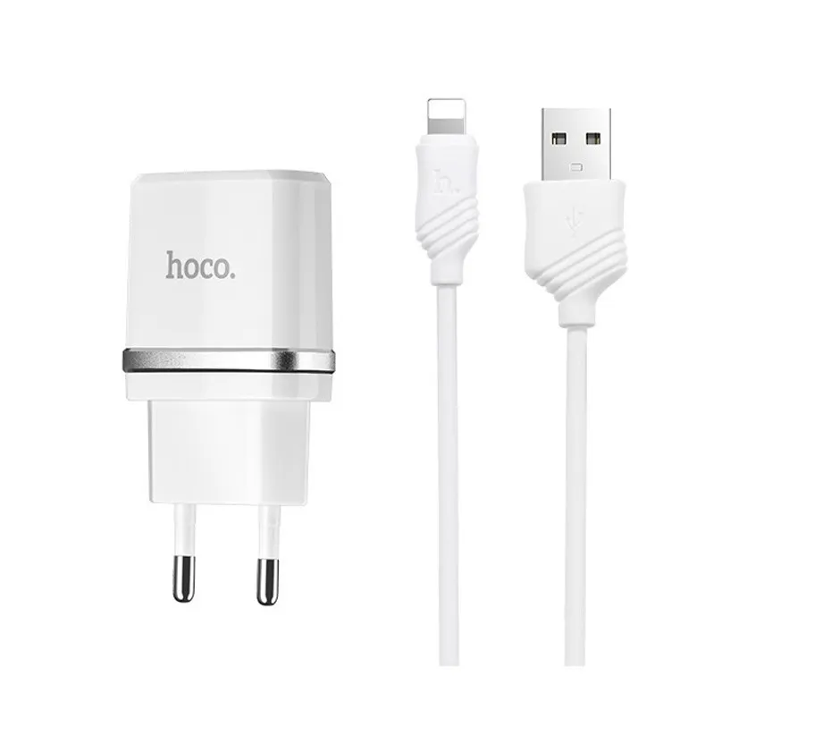 hoco Блок питания сетевой 2 USB HOCO, C12, 2400mA, пластик, кабель Apple 8 pin, белый (C12 WHT 8pin)