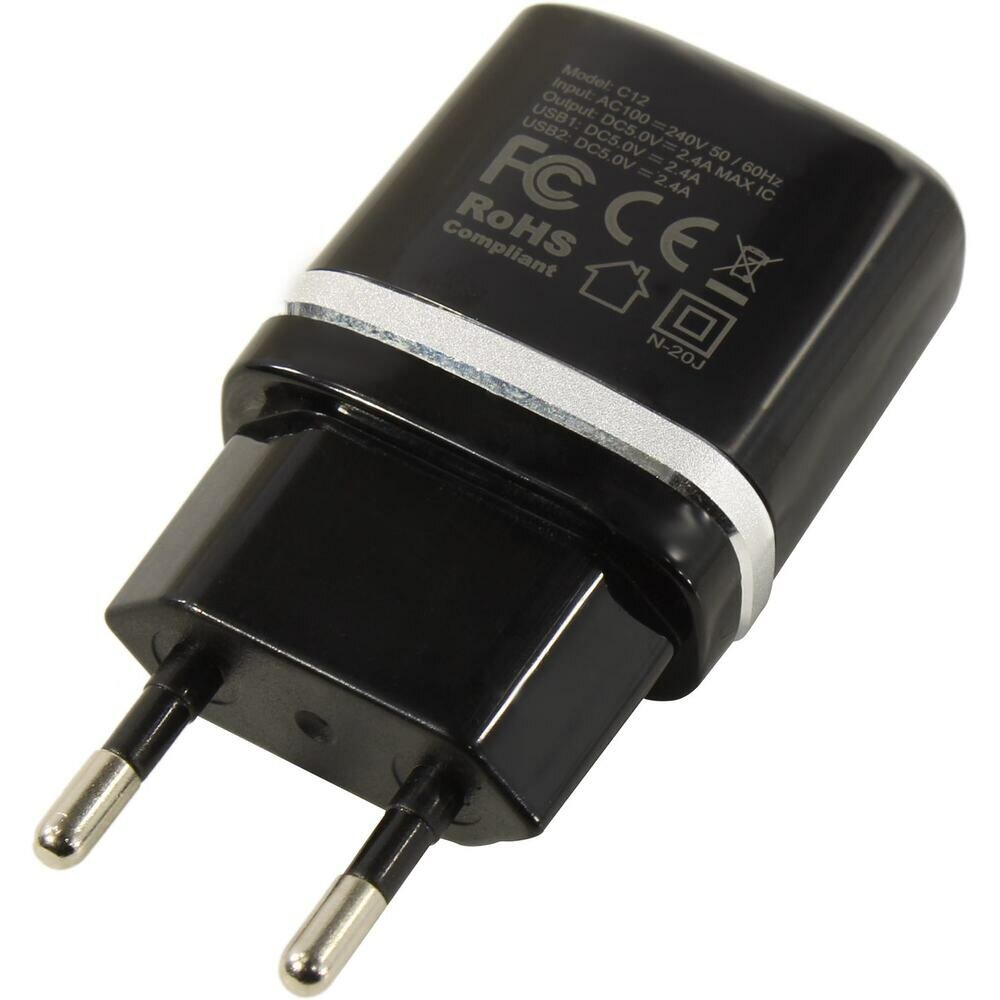 Hoco Сетевое зарядное устройство Hoco C12, 2 USB - 2.4 А, кабель Lightning 1 м, черный