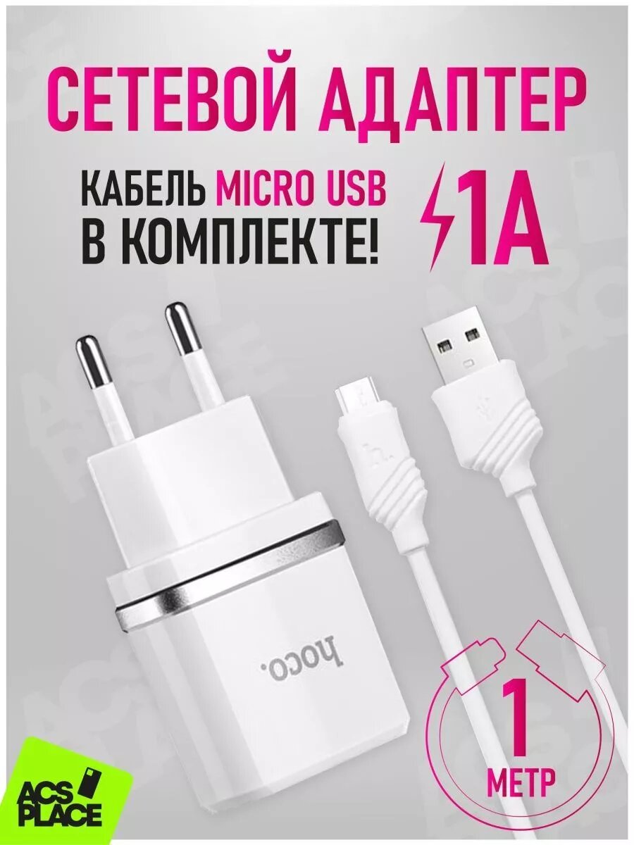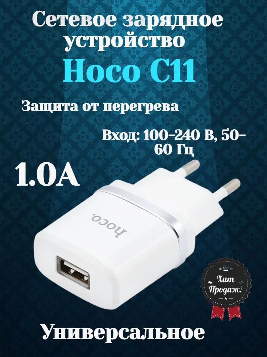 Сетевое ЗУ HOCO C11, 1хUSB-А, 1А, белый (10/100)