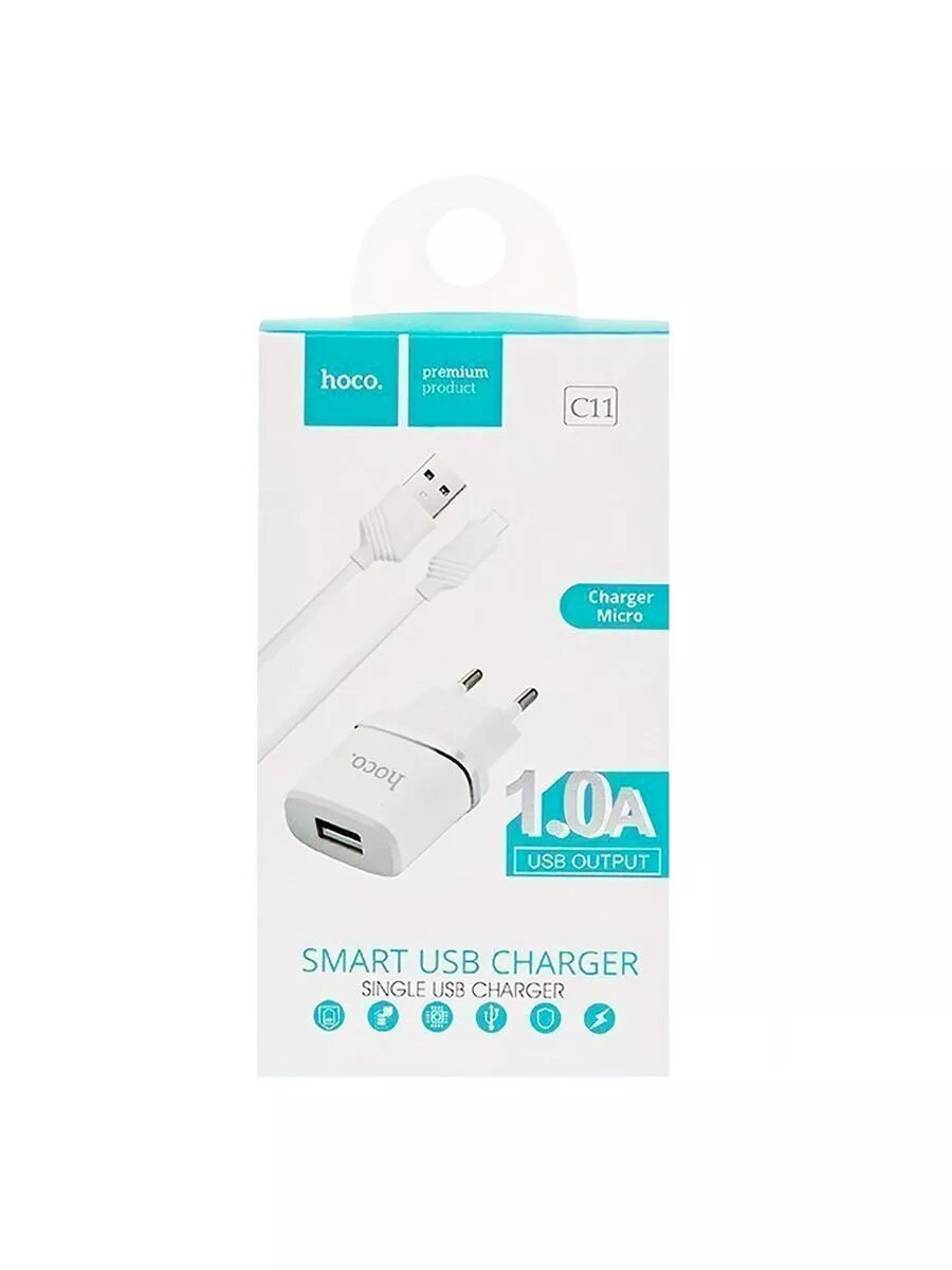Блок питания (сетевой адаптер) HOCO C11 Smart один порт USB, 5V, 1.0A, белый
