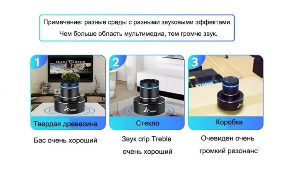 Вывод: Пока нормальные люди будут наслаждаться музыкой из нормальной акустики, вы будете бегать и прикладывать этот чудо-вибратор ко всему попало чтобы найти хоть что то, на чём эта "игрушка для взрослых" будет более менее приемлемо звучать. Звук тихий, ватт 10 не больше, более менее звучит только на достаточно большом стекле на котором не держится и падает. На всём остальном звук полная лажа - то высоких нет, то средних, то ваще как из бочки звучит. Короче, прежде чем купить подумайте, нужно ли вам это "чудо техники"! За это бабло можно неплохую акустику взять. Кстати... моя сломалась за неделю использования. Всем приятных покупок в интернете, а продавцу - обанкротиться нафиг чтоб фигню всякую не впаривал! |