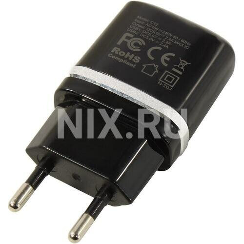 Hoco Сетевое зарядное устройство Hoco C12, 2 USB - 2.4 А, кабель Lightning 1 м, черный