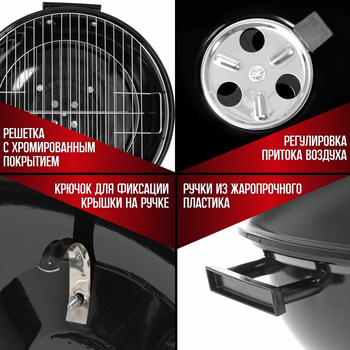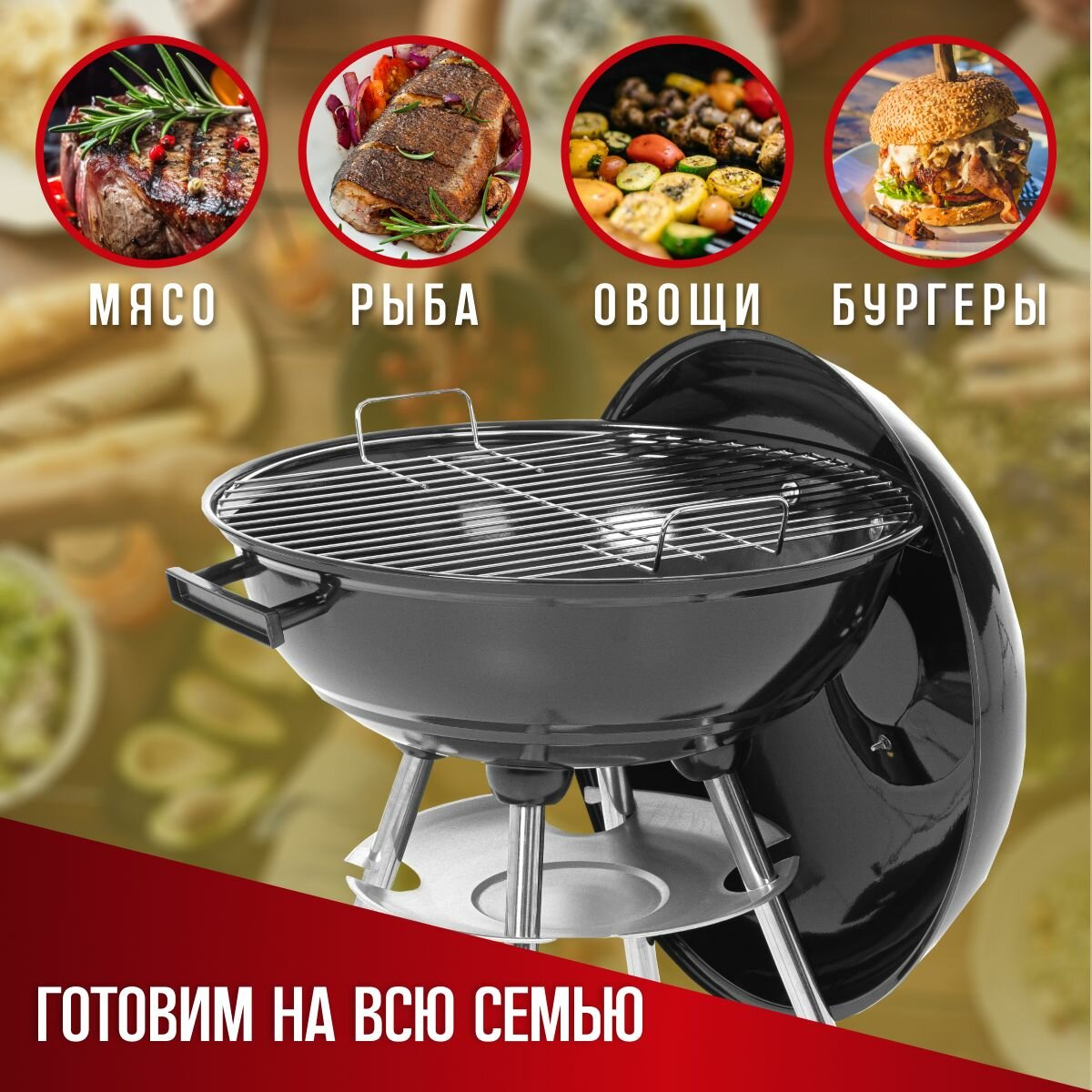 | Отзыв: | Готовить одно удовольствие. Под крышкой готовится быстрее, не страшен ветер и осадки - не выдувает жар и угли, пепел и мелкие угольки остаются в пепельнице.