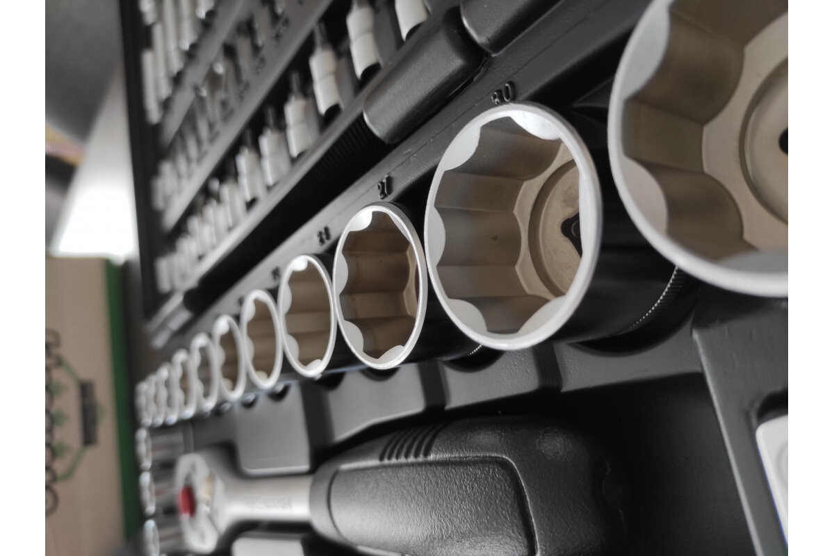 | Головки торцевые подробно | 1/4" (Surface): 4, 4.5, 5, 5.5, 6, 7, 8, 9, 10, 11, 12, 13, 14 мм; длинные 1/2": 6, 7, 8, 9, 10, 11, 12, 13 мм; с битами 1/4": H3,… H4, H5, H6, T8, T10 ,T15, T20, T25, T27, T30, SL4, SL5.5, SL6.5, PH1, PH2, PZ1, PZ2; трещетка 1/4"; удлинитель 1/4": 50, 100 мм; вороток т-образный 1/4"; карданный шарнир 1/4"; 1/2" (Surface): 10, 11, 12, 13, 14, 15, 16, 17, 18, 19, 20, 21, 22, 24, 27, 30, 32 мм; длинные 1/2" (Surface): 14, 15, 17, 19, 22 мм; трещетка 1/2"; карданный шарнир 1/2" ещёскрыть |
