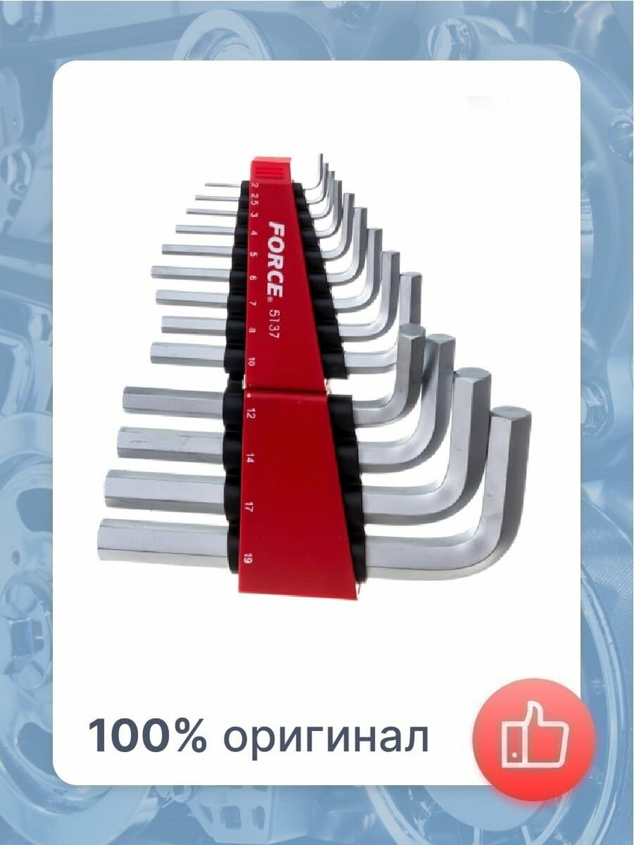 FORCE 5137 Набор шестигранников Г-образн.2-19 мм, 13 предм.